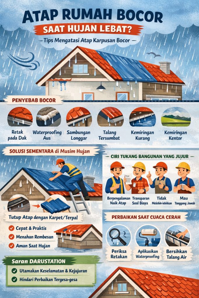 Menurut Darustation, persoalan bocor atap di musim hujan seharusnya dipandang sebagai bagian dari manajemen risiko rumah tangga, bukan sekadar kerusakan fisik. Tidak semua masalah harus diselesaikan sekaligus, apalagi jika kondisi cuaca tidak memungkinkan.