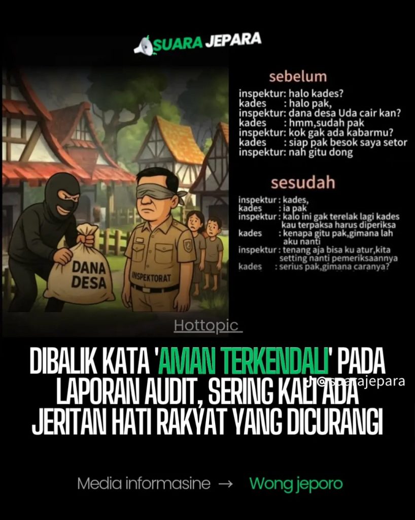 Unggahan akun Suara Jepara mengingatkan publik bahwa audit bukan sekadar prosedur teknis, melainkan persoalan keadilan sosial dan tanggung jawab moral.