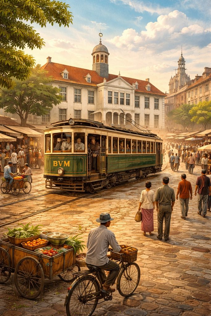 Bayangkan suasana pagi di Harmoni: trem datang silih berganti, orang turun naik, pedagang beraktivitas—sebuah ritme kota yang sangat berbeda dengan Jakarta hari ini.