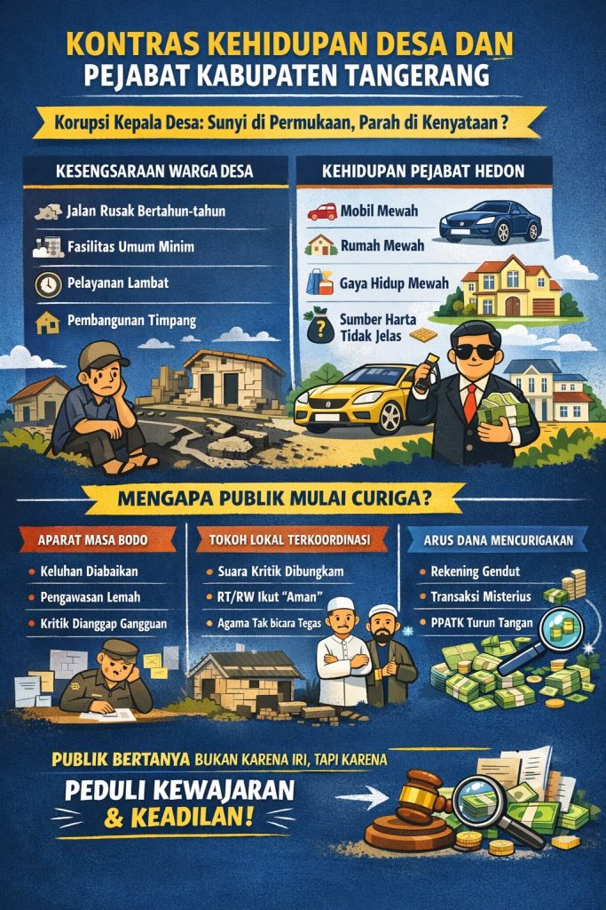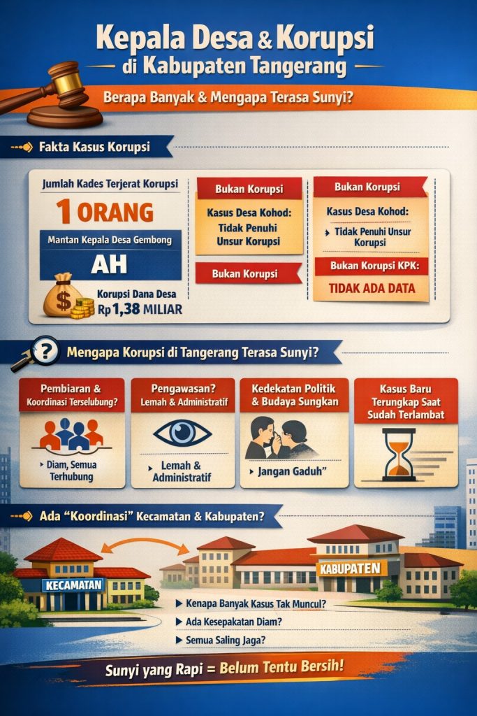 mengapa kasus korupsi kepala desa di Kabupaten Tangerang terasa sunyi, padahal persoalan di lapangan begitu nyata?