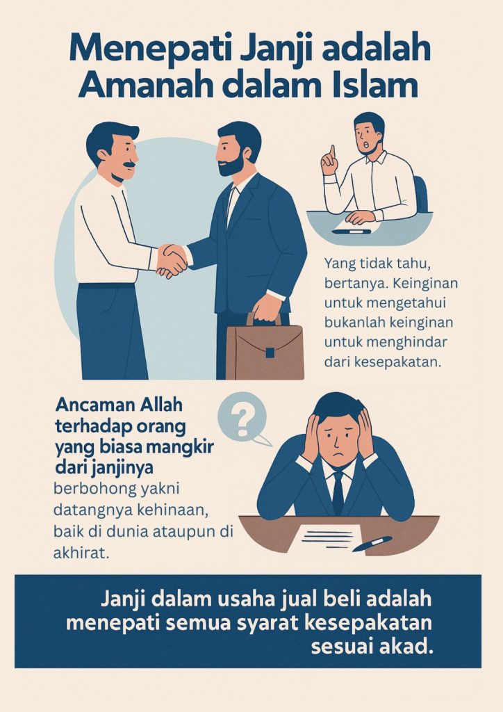 🕌 Islam menempatkan menepati janji sebagai bagian dari amanah dan akhlak mulia. Dalam usaha dan jual beli, setiap kesepakatan adalah bentuk akad yang harus dijalankan dengan jujur dan bertanggung jawab.