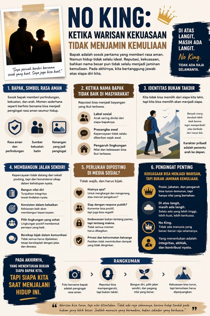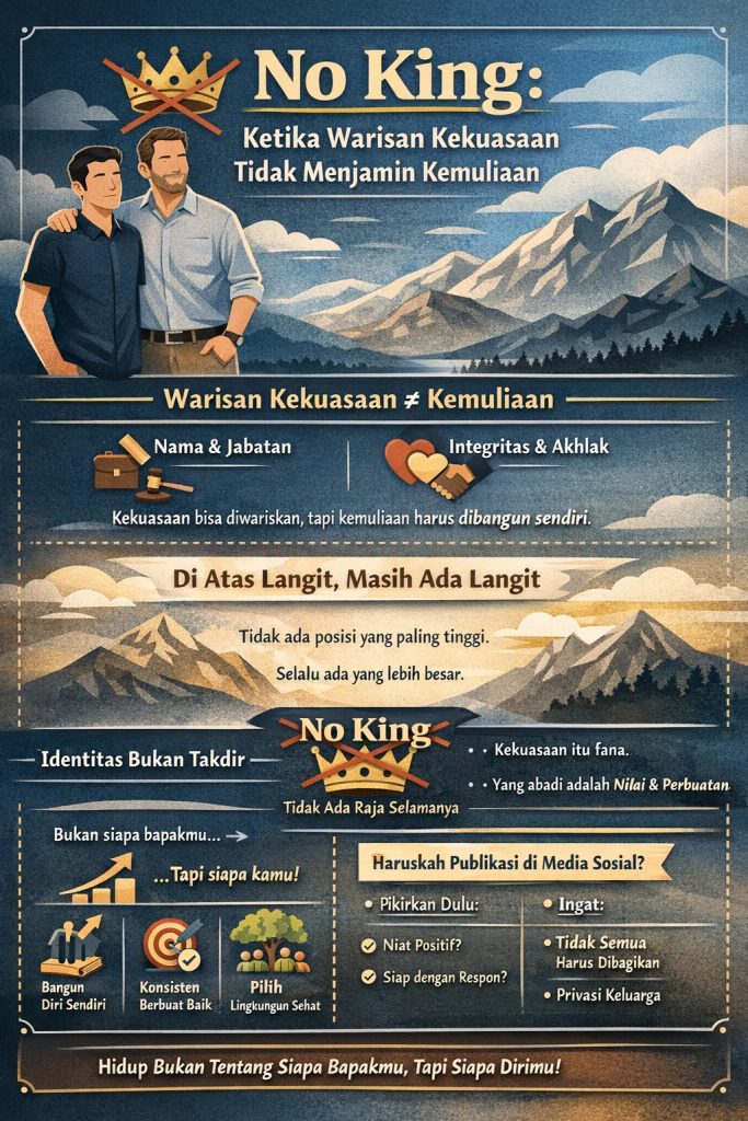 Ya, seorang bapak bisa mewariskan banyak hal—nama, jaringan, bahkan kekuasaan. Tapi satu hal yang tidak bisa diwariskan secara instan adalah kemuliaan.