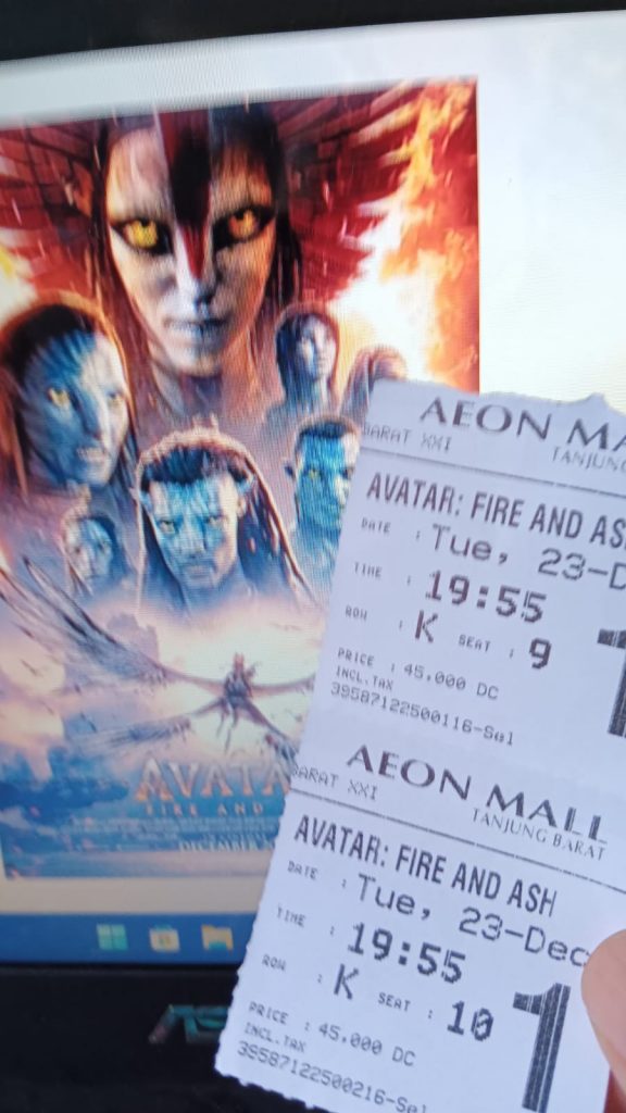 Hari Selasa, 23 Desember 2025, jadi momen yang penuh cerita. Kami berdua memutuskan untuk menonton tayangan terakhir jam 19.55 di XXI AEON Tanjung Barat. Transportasi menuju lokasi cukup praktis: bisa naik angkot, bus TransJakarta, atau KRL. Jadi meski spontan, akses ke bioskop tetap mudah dan cepat.