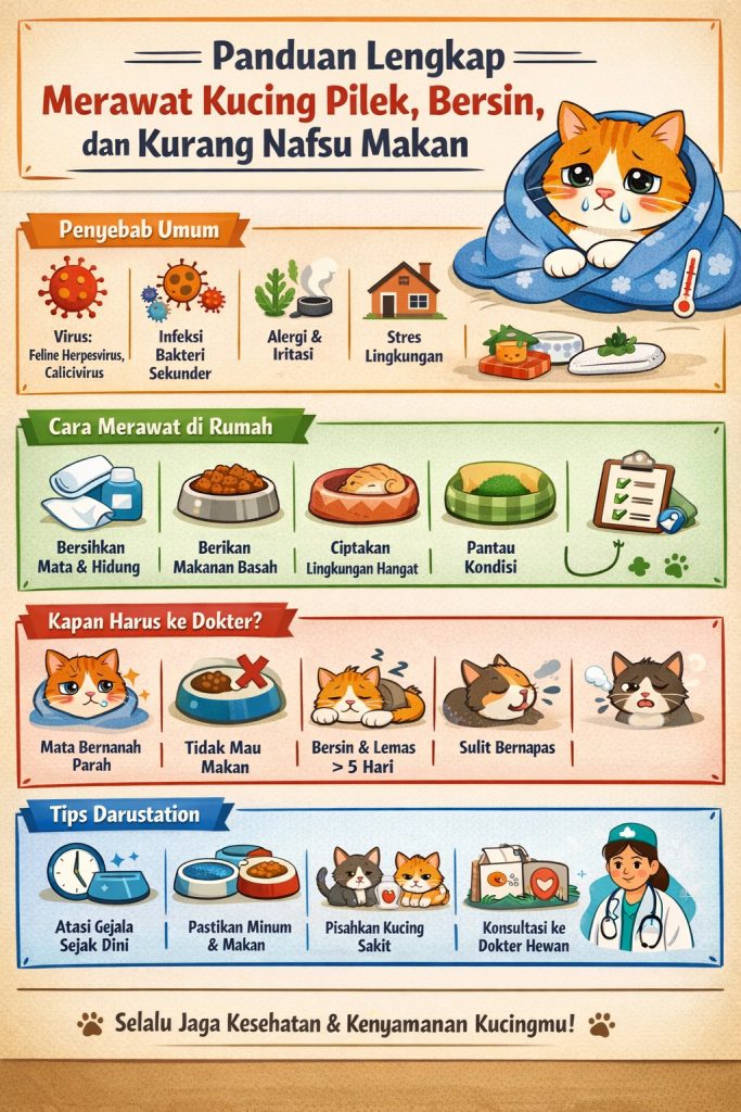 Panduan Lengkap Merawat Kucing Pilek, Bersin, dan Kurang Nafsu Makan