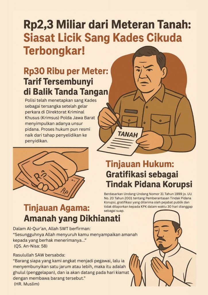 Skandal Kades Cikuda bukan sekadar cerita tentang uang dan dokumen. Ia adalah cermin dari bagaimana kekuasaan lokal bisa disalahgunakan jika tak diawasi. Dari sisi hukum, ia melanggar UU Tipikor. Dari sisi agama, ia mencederai amanah dan nilai keadilan.