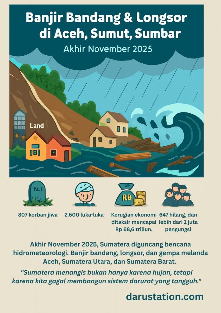“Sumatera menangis bukan hanya karena hujan, tetapi karena kita gagal membangun sistem darurat yang tangguh.”
