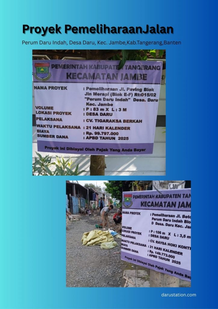 - Tahun 2022 juga dilakukan pembangunan jalan beton di Perum Daru Indah.