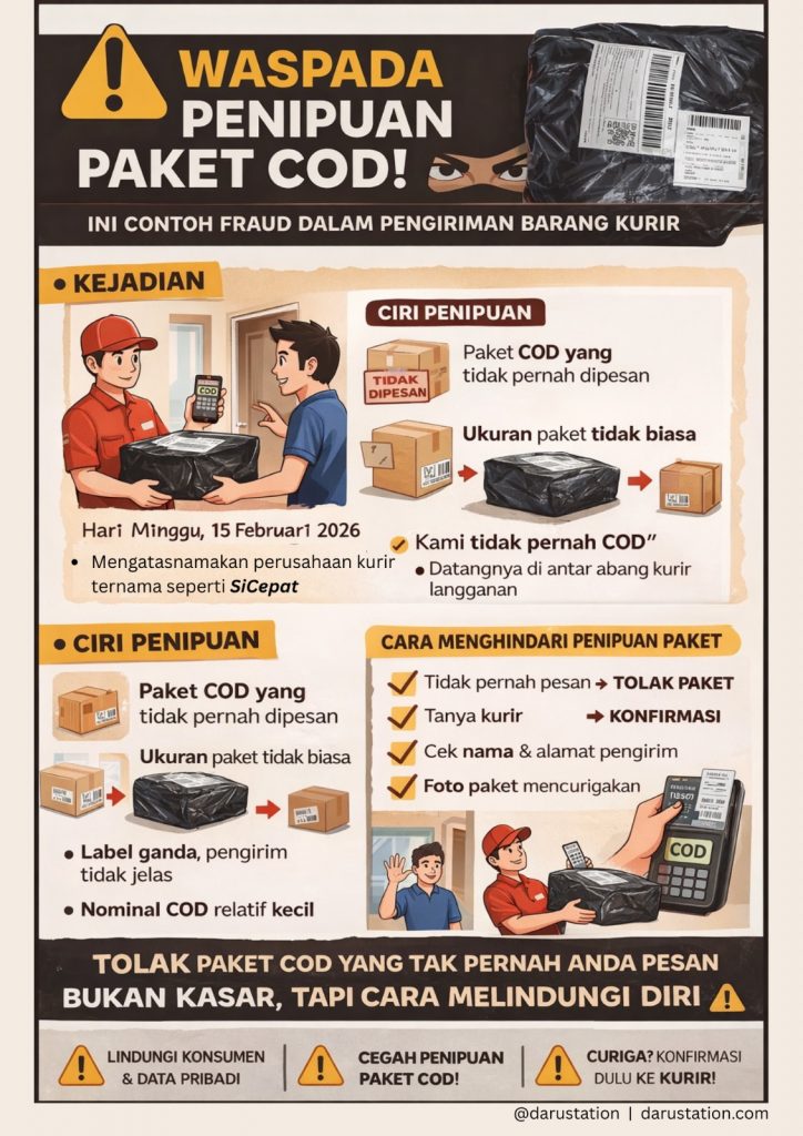 Belanja online memang memberi kemudahan. Namun di balik itu, ada ancaman yang sering luput dari perhatian konsumen: penipuan paket COD (Cash on Delivery). Kasus seperti ini bukan sekadar cerita orang lain. Kami mengalaminya sendiri.