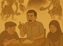 Mentari pagi menyembul perlahan di balik bayang sawah yang menghijau membentang di sisi rel kereta dan perumahan baru yang merangsek masuk ke tepian desa. Embun masih enggan pergi