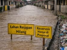 Hujan belum lama turun, tapi air sudah naik ke jalan perumahan. Anak-anak digendong, motor mogok, dan warga kembali mengulang kalimat yang sama setiap tahun: “Ini banjir lagi, kenapa