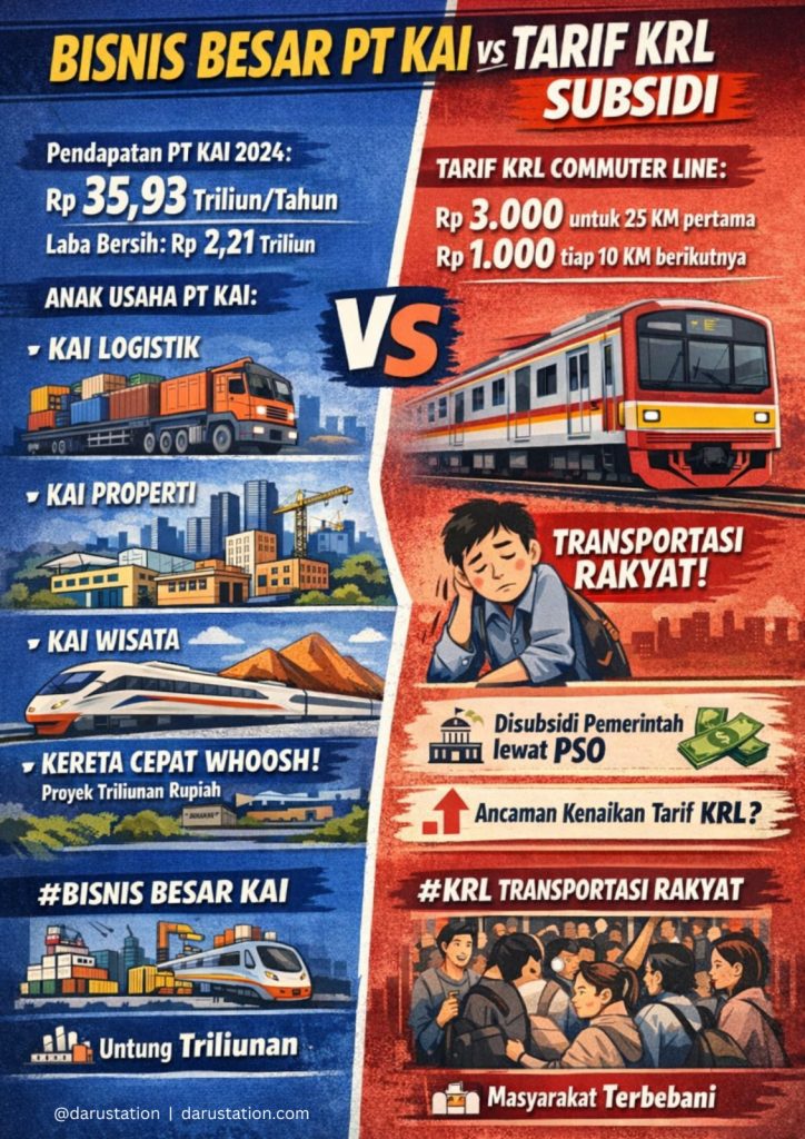 Darustation menilai bahwa keuntungan dari sektor komersial ini dapat membantu menopang layanan publik seperti KRL agar tetap terjangkau.