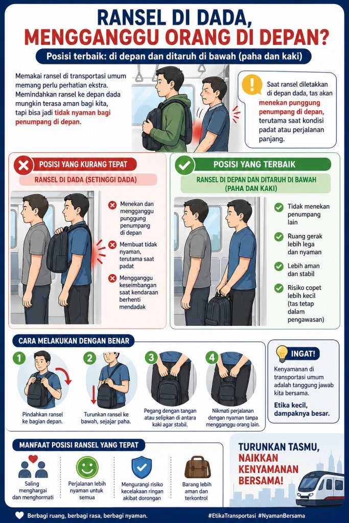 Jadi, lain kali saat naik transportasi umum dan membawa ransel, coba ingat ini: